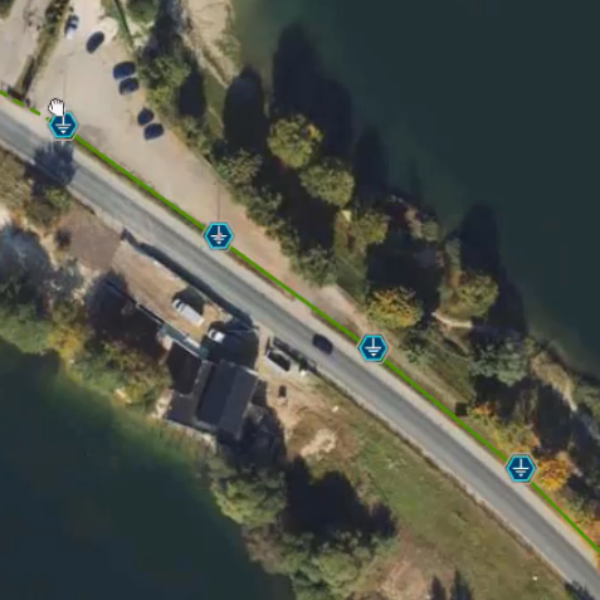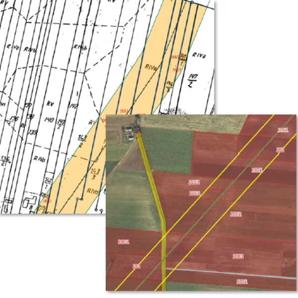 For the feasibility studies, which included 241 kilometers of area, over 160 sheets of existing geodetic maps were obtained at various scales, as well as 35,000 feature extracts from the land and building register which were converted and stored in the newly designed digital database.